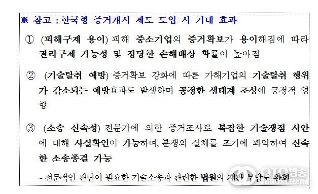 oto방송 김민석 기자 | 중소벤처기업부는 ‘한국형 증거개시 제도(K-디스커버리)’ 도입 등을 주요 골자로 하는 '대·중소기업 상생협력 촉진에 관한 법률'개정안이 29일 국회 본회의를 통과했다고 밝혔다.