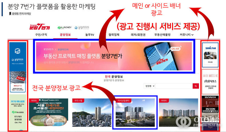 분양7번가는 분양률은 높이고, 광고비는 줄일 수 있는 방법을 찾기위해 등록된 협력사뿐 아니라 방송사와도 협력하여 다양한 마케팅 상품을 개발하고 있다고 전했다.