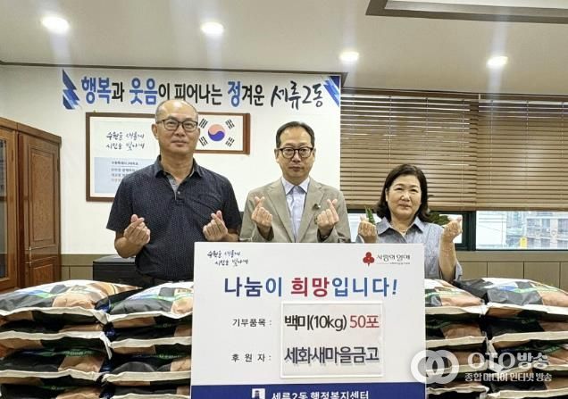 oto방송 김민석 기자 | 수원시 권선구 세류2동 소재 MG세화새마을금고는 지난 17일, 추석 명절을 맞이하여 취약계층을 위한 백미 10kg 50포를 세류2동 행정복지센터에 기부했다.