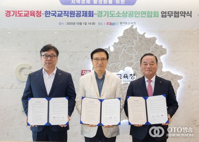oto방송 김민석 기자 | 경기도교육청이 1일 남부청사에서 경기도소상공인연합회, 한국교직원공제회와 ‘지역경제 활성화를 위한 상생 업무협약’을 체결했다.