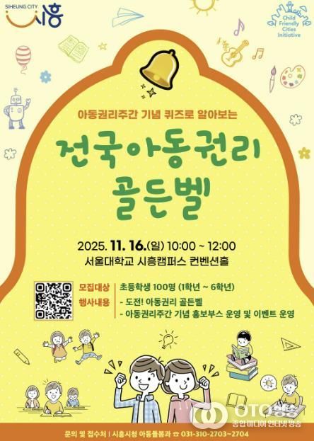 oto방송 김민석 기자 | 시흥시는 오는 11월 16일 오전 10시, 서울대학교 시흥캠퍼스 컨벤션홀에서 열리는 ‘퀴즈로 알아보는 전국 아동권리 골든벨’에 참가할 초등학생을 10월 31일까지 모집한다.