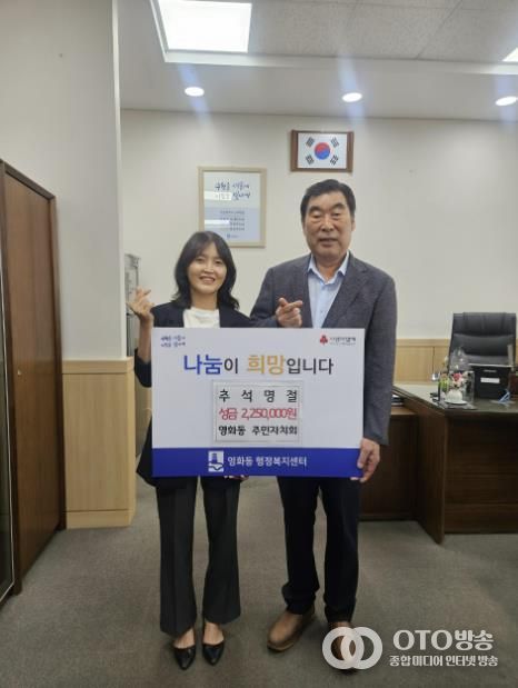 oto방송 김민석 기자 | 수원시 장안구 영화동 주민자치회는 지난 1일, 추석 명절을 앞두고 관내 도움이 필요한 이웃들을 위해 성금 225만원을 기부했다고 밝혔다.