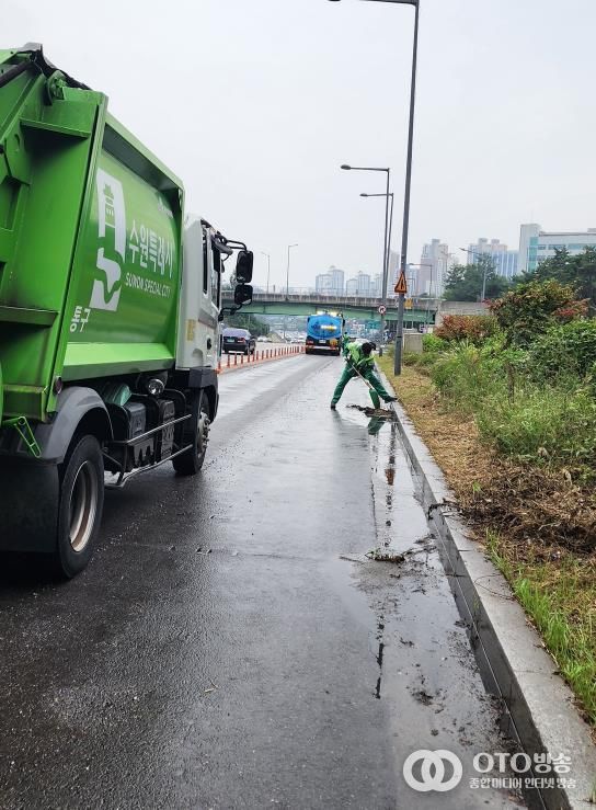 oto방송 김민석 기자 | 수원특례시 영통구는 '대한민국 새단장' 캠페인의 일환으로 민족 최대의 명절 추석을 맞아 고향을 찾는 귀성객들에게 쾌적하고 안전한 도로 환경을 제공하고자 영동고속도로 동수원나들목 진출입로 집중 환경정비를 실시했다.