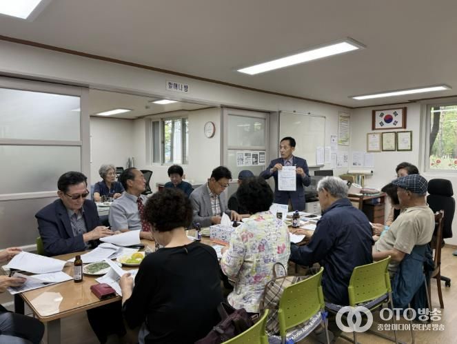 oto방송 김민석 기자 | 수원시 팔달구 화서2동 행정복지센터는 지난 10월 1일 오전 11시, 관내 16개소 경로당 회장단이 참석한 가운데 꽃뫼버들마을 금강아파트 경로당에서 2025년 10월 경로당협의회 월례회의를 개최했다.