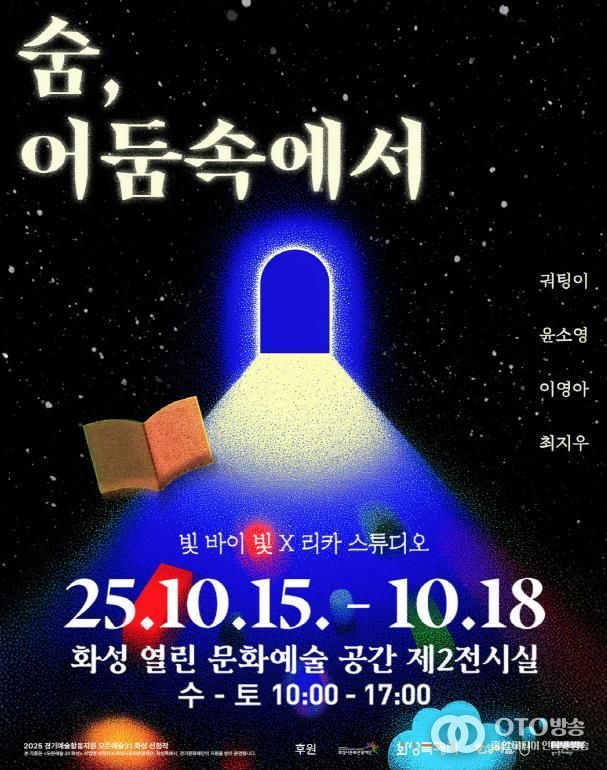 oto방송 김민석 기자 | 화성특례시와 화성시문화관광재단이 추진하는 ‘2025 모든예술31 화성’ 사업에 선정된 '숨, 어둠속에서'가 오는 10월 15일부터 10월 18일까지 화성 열린 문화예술 공간 제2전시실에서 개최된다. 이번 전시는 미디어아트를 활용한 몰입형 전시로, 오전 10시부터 오후 5시까지 진행되며 누구나 무료로 관람할 수 있다.