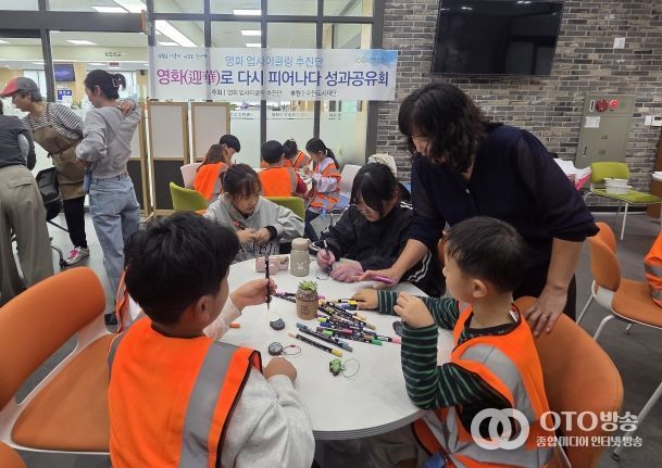oto방송 김민석 기자 | 장안구 영화동 마을만들기협의회는 지난 14일, 영화동 행정복지센터에서 수원시다함께돌봄센터 4호점 어린이들과 함께하는 업사이클링 체험 행사를 진행했다.