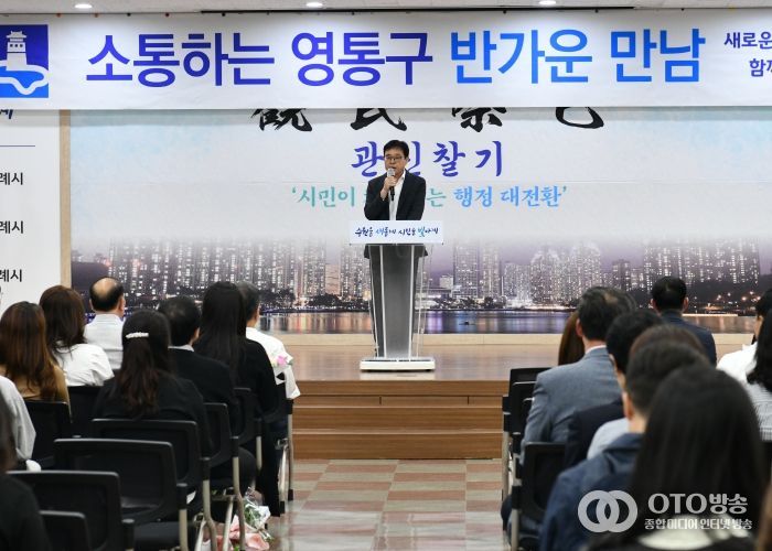 oto방송 김민석 기자 | 수원특례시 영통구는 지난 14일 구청 대회의실에서 구민과 공직자가 함께하는‘반가운 만남’을 개최했다.