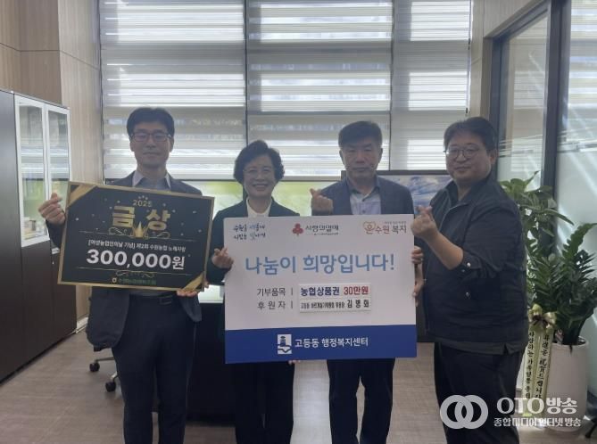 oto방송 김민석 기자 | 수원시 팔달구 고등동 바르게살기운동위원회 위원장 김병화는 10월 16일, 수원농업협동조합이 주최하는 여성 농업인의 날 기념 제2회 수원농협 노래자랑에서 금상을 수상하며 받은 농협상품권 30만원을 고등동 행정복지센터에 기탁했다.
