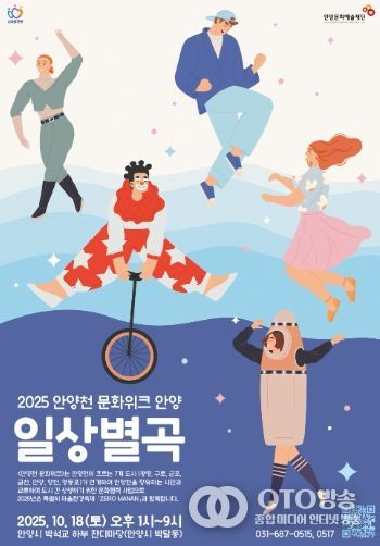 안양문화예술재단은 이번 문화위크 기간 중 10월 18일 오후 1시부터 5시까지, 박달동 박석교 하부 잔디마당에서 ‘2025 안양천 문화위크 안양 : 일상별곡’을 개최한다. 이번 행사는 만안종합사회복지관의 마을환경축제 ‘ZERO MANAN’과 공동 개최되며, 지역 내 환경문제에 심각성을 인식하고 공동대응하기 위한 친환경, 자원순환 부스가 운영된다. 부스 운영시간에는 가족 단위 방문객을 위한 상 ‘서커스 오브 안양천’ 공연과 서커스 체험 프로그램도 함께 진행된다.