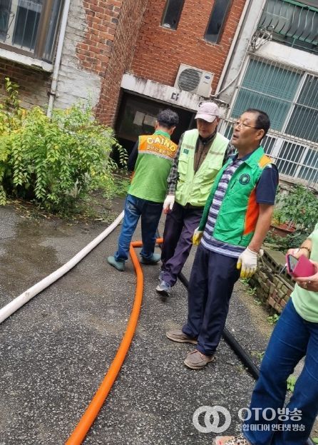 oto방송 김민석 기자 | 평택시 지산동에 있는 빌라 지하실에 지난 14일 침수가 발생했다. 이에 지산동 자율방재단은 즉시 현장으로 출동해 단원 8명과 함께 긴급 배수 작업을 실시하며 주민 피해 최소화에 나섰다.