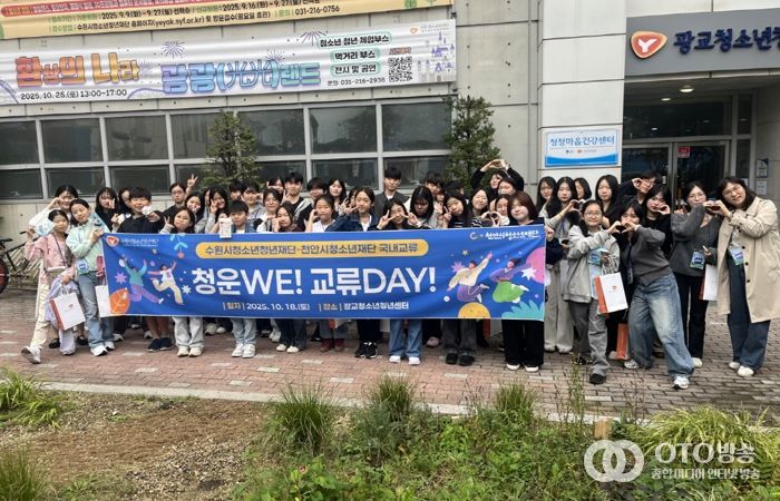 oto방송 김민석 기자 | 수원시청소년청년재단 동부청소년지역센터는 천안시청소년재단과 함께 2025 수원·천안 지역 청소년운영위원회 교류활동‘청운WE! 교류DAY’를 10월 25일 광교청소년청년센터에서 성황리에 마무리했다.