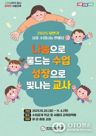 oto방송 김민석 기자 | 경기도시흥교육지원청은 10월 20일부터 11월 6일까지, 관내 유치원부터 고등학교까지 모든 학교급이 참여하는 ‘2025 하반기 시흥 수업나눔한마당’을 개최한다.
