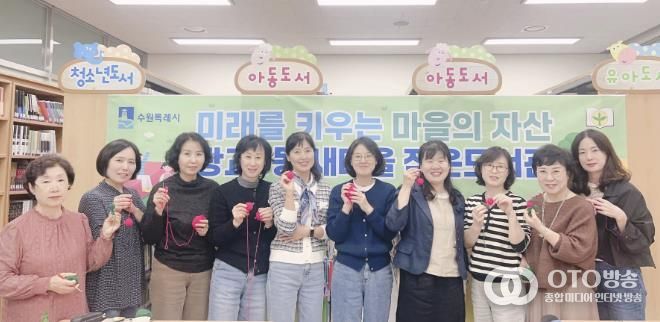 oto방송 김민석 기자 | 수원시 영통구 광교1동 새마을문고회는 10월 20일, 문고 회원과 지역 주민들을 대상으로‘손뜨개로 만드는 나만의 키링' 특강을 진행했다.