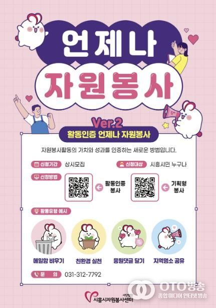 센터는 이번 사업을 계기로 시흥시자원봉사센터의 ‘언제나 자원봉사’ 페이지를 개편해, 시민들이 언제 어디서나, 비대면으로 쉽게 활동인증 자원봉사에 참여할 수 있는 시스템을 구축했다. 또한, 쓰담달리기(플로깅) 외에도 디지털 탄소 저감, 지역 문화 소개, 친환경 활동 등 다양한 종류의 활동인증 자원봉사 프로그램을 제공한다.