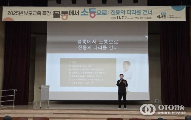 oto방송 김민석 기자 | 안산시는 단원구청 단원홀에서 ‘불통에서 소통으로: 진통의 다리를 건너’를 주제로 부모교육 특강을 진행했다고 11일 밝혔다.