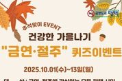 oto방송 김민석 기자 | 평택시 송탄보건소에서 오는 10월 1일부터 13일까지 시민 누구나 참여할 수 있는 ‘건강한 가을나기 금연·절주 퀴즈 이벤트’를 진행한다. 이번 퀴즈 이벤트는 정보무늬(QR코드)를 활용 간편하게 참여할 수 있으며 금연·절주의 필요성과 건강관리 정보를 흥미로운 퀴즈 형식으로 접할 수 있도록 기획됐다. 퀴즈를 완료한 참여자 중 정답자 100명을 추첨해 금연 홍보물(보조배터리)을 증정하며 당첨자는 10월 15일 개별 문자로 안내된다. 상품은 10월 16일부터 22일까지 송탄보건소 1층 헬스케어상담센터 내 금연클리닉에서 수령할 수 있다. 송탄보건소 관계자는 “모든 시민이 금연과 절주의 필요성을 이해하고 건강한 생활을 실천하는 계기가 되길 바란다”라고 전했다.