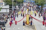 oto방송 김민석 기자 | ‘K-축제’로 자리매김한 정조대왕 능행차 공동재현이 28일 수원에서 열렸다. 오전에 세차게 비가 내렸지만 수원종합운동장에서 본격적인 행렬이 시작된 오후에는 비가 그쳐 수많은 관람객이 정조대왕 능행차 재현을 함께 즐겼다. 정조대왕 능행차 재현 행렬(수원 구간)은 오전 노송지대(1구간)에서 시작됐다. 오후 3시 30분 수원종합운동장에서 행렬이 출발했고, 종합운동장에서 행궁광장에 이르는 길 양쪽은 관람객들로 가득했다. 시민 2000여 명과 말 70여 필이 행렬에 참여했다. 행궁광장에서 정조대왕이 입궁하는 퍼포먼스로 능행차 공동재현은 마무리됐다. 행궁광장에서는 국제자매도시 공연단의 축하공연, 정조대왕 행차를 환영하는 축하행렬인 수원화성 퍼레이드, 정조대왕 능행차 재현·입궁 퍼포먼스, KBS 국악관현악단과 국악인 김영임, 유태평양의 협연 콘서트가 이어졌다. 이재준 수원시장, 이재식 수원시의회 의장, 수원 지역 국회의원들도 행렬에 참여하며 시민들과 함께했다. 행궁광장에서 시민들을 만난 이재준 시장은 “수많은 시민이 함께 즐긴 정조대왕 능행차 공동재현은 정조대왕이 꿈꿨던