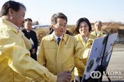 oto방송 김민석 기자 | 28일 안성에서 19번째 민생경제 현장투어에 나선 김동연 경기도지사가 경기도 최남단 안성의 거점소독시설을 찾아 초동 방역 상황을 긴급 점검했다. 이번 점검은 지난 25일 충남 당진에서 발생한 아프리카돼지열병에 대한 선제적 방역 조치의 하나로 마련됐다. 김 지사는 현장에서 터널식 소독조에서 진행되는 가축 방역 과정을 지켜본 후 관계자들을 격려하고 겨울철 동물방역에 최선을 다해줄 것을 당부했다. 김 지사는 “조류인플루엔자와 아프리카돼지열병이 계속 전파 중이어서 걱정이다. 경기도는 빠른 대응, 강력한 방역, 신속한 지원의 3대 원칙으로 동물방역에 대처하겠다”며 “축산농가 보호와 축산업 발전을 위해 최선을 다하겠다. 축산농가 종사자 여러분들도 방역과 예방에 협조를 부탁드린다”고 강조했다. 돼지 33만 두를 사육하는 안성(도내 2위, 전국 4위)은 평택·화성과 근접한 돼지 사육 중심지다. 경기도는 방역대 설정, 이동 제한 등 광범위한 방역 조치를 시행하고 있다. 현장에서 김보라 안성시장, 윤종군 국회의원과 즉석 스탠딩 간담회 가져 소독시설 점검을 마친 김동