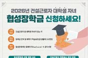 oto방송 김민석 기자 | 건설근로자공제회(이사장 직무대행 권혁태)와 협성문화재단(이사장 박석귀)은 건설근로자의 대학생 자녀 학업 지원을 위해 ‘2026년 신규 협성장학생’을 선발한다. 지원대상은 건설근로자공제회에 등록된 건설근로자로 총 적립일수가 600일 이상이고, 2025년도 근로내역은 최소 100일이다. 건설근로자의 자녀 가운데 국내 4년제 대학 신입생과 2026년 기준 2~3학년 재학생을 대상으로 장학생을 모집한다. 선발 인원은 20명 내외다. 제출서류, 심사기준은 협성문화재단 홈페이지 내 공지사항을 통해 확인할 수 있다. 접수기간은 오는 12월 15일부터 내년 1월 5일까지이며, 협성문화재단에 제출서류를 등기우편으로 제출해야 한다. 서류합격자는 2026년 1월 26일 발표되며, 면접은 2월 2일부터 6일까지 진행된다. 최종 합격자는 2월 9일 재단 홈페이지에 게시되고, 2월 12일 장학증서 수여식이 열릴 예정이다. 장학생에게는 등록금 전액과 함께 매 학기 50만원의 학습보조금이 지원된다. 또한 인문학 강의, 독서 프로그램, 해외 탐방 및 봉사 활동 등 다양한 장학 프로그램 참여 기회도 제공된다. 장학생