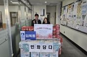 oto방송 김민석 기자 | 지난 26일, 당수동 소재 ‘민화담다’는 입북동 행정복지센터를 방문해 라면 20박스, 휴지 10개를 전달했다. 이번에 기탁한 물품은 ‘민화담다’ 직원들이 어려운 이웃을 생각하며 기부금을 모아 마련했으며, 입북동 지역사회보장협의체를 통해 복지사각지대, 장애인, 한부모가정, 독거어르신 등에 전달될 예정이다. 이경영 입북동장은 “아름다운 나눔으로 우리 사회가 좀 더 따뜻해지고 있다.”며 “기탁해 주신 물품은 어려운 이웃들을 위해 잘 전달하겠다.”라고 말했다. 한편 입북동행정복지센터는 복지사각지대를 발굴하여 긴급 지원 및 사례관리 대상자 연계 등 지역사회에 소외된 이웃에 대한 관심으로 다양한 활동을 펼쳐 나가고 있다.