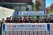 oto방송 김민석 기자 | 수원시 권선구 세류2동 행정복지센터는 12일, 세류2동 행정복지센터 주차장에서 ‘사랑의 김장 나눔 행사’를 열었다. 이번 행사에는 세류2동 새마을부녀회 주관으로 마련됐으며, 주민자치회, 통장협의회를 포함한 9개 단체원 등 70여 명이 정성껏 김장김치를 담가 관내 불우이웃 약 500세대에 전달할 예정이다. 변영호 동장은 “추운 날씨에도 이웃을 위해 사랑의 김장 나눔에 참여해준 단체원들께 깊이 감사드리며 앞으로도 단체와의 협력으로 행복과 웃음이 피어나는 정겨운 세류2동 만들기에 힘쓰겠다”라고 전했다. 김재덕 새마을부녀회장은 “힘들지만 이웃을 생각하니 마음이 따뜻해졌다”라며 “앞으로도 지역사회와 함께하는 봉사활동을 꾸준히 이어가겠다”라고 말했다.
