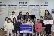 oto방송 김민석 기자 | 장안구 시립파크푸르지오 어린이집은 지난 10일, 정자2동 행정복지센터를 찾아 어려운 이웃을 위해 써달라며 663,000원을 기부했다. 이 기부금은 지난 7일 어린이집에서 열린 바자회에서 마련됐다. 학부모와 아이들의 재능기부로 만든 물품을 비롯해 문구, 분식 등을 판매해 얻은 수익금 전액이다. 시립파크푸르지오 어린이집 김미순 원장은 “아이들과 학부모님들이 함께 즐거운 바자회를 치르고 수익금으로 좋은 일을 할 수 있어 뿌듯하다. 우리 아이들 모두가 나누는 행복이 어떤 것인지 체험할 수 있을 것”이라고 전했다. 윤상숙 정자2동장은 “아이들과 학부모님, 어린이집 교직원 모두에게 깊이 감사드린다. 귀한 후원금은 아이들의 예쁜 마음을 담아 우리 이웃에게 잘 전달하겠다”고 말했다.