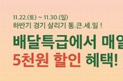 oto방송 김민석 기자 | 경기도 공공배달앱 배달특급이 2025년 하반기 경기살리기 ‘통 큰 세일’에 합류한다. 경기도주식회사는 오는 30일 일요일까지 배달특급 전체 회원을 대상으로 배달특급 입점 가맹점에서 사용할 수 있는 5천원 할인 쿠폰을 제공한다고 23일 밝혔다. 해당 프로모션은 배달특급 애플리케이션 내 상반 ‘통 큰 세일’ 배너를 통해 쿠폰을 내려받아 결제 단계에서 사용할 수 있다. 예산 소진 시까지 회원당 매일 1회 내려받아 사용 가능하다. 배달특급은 지난 상반기에도 경기도와 경기도시장상권진흥원이 추진한 ‘2025년 상반기 경기 살리기 통 큰 세일’에 참여한 바 있다. 당시 배달특급은 경기도 지역화폐가 연동되는 공공배달앱 3사(배달특급, 땡겨요, 먹깨비) 가운데 가장 먼저 할인 쿠폰을 소진시켰고, 가장 많은 30억 원의 거래액을 기록하며 소비자와 소상공인의 상생을 이끌어 낸 바 있다. 한편, 배달특급의 모든 이벤트는 해당 상단 배너 기능을 통해 확인 가능하며, 지역에 따라 할인 조건과 금액이 달라질 수 있어 사전 확인이 필요하다.