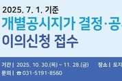 oto방송 김민석 기자 | 수원시 팔달구는 올해 7월 1일 기준 개별공시지가에 대해 오는 10월 30일 결정·공시하고 이의신청을 접수받는다고 밝혔다. 대상 토지는 2025년 1월 1일부터 6월 30일까지의 토지이동(분할, 합병 등)이 발생한 토지 총 159필지이며, 구청 토지관리과 및 해당 토지소재지 관할 동 행정복지센터, 부동산공시가격알리미 등에서 열람이 가능하다. 결정된 개별공시지가에 이의가 있는 토지소유자나 이해관계인은 오는 11월 28일까지 구청 토지관리과 및 동 행정복지센터에 비치된 이의신청서를 작성하여 직접 제출하거나 팩스 또는 우편으로 제출 가능하다. 인터넷을 통한 이의신청은 부동산공시가격알리미에서 신청할 수 있다. 이의신청이 제출된 토지는 인근 토지 또는 표준지 가격과 균형을 이루는지 의 여부 등을 재확인 후 감정평가사의 검증과 수원시 부동산가격공시위원회 심의를 거쳐 최종 결정 사항을 신청인에게 통지할 예정이다. 이에 팔달구 관계자는 "시민들의 재산권을 보호할 수 있도록 신뢰성 높은 개별공시지가 산정에 최선을 다하겠다."라고 말했다.