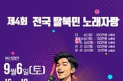 oto방송 김민석 기자 | 통일부 남북통합문화센터(서울시 강서구 소재)는 9월 6일 오후 4시, '전국 탈북민 노래자랑'을 개최한다. 올해로 4회를 맞이하는 '전국 탈북민 노래자랑'은 남북한 출신 주민들이 노래를 통해 함께 어울리며 따뜻한 마음을 나누기 위해 마련됐다. 매년 열기를 더해가는 전국 탈북민 노래자랑은 72명이 참가 신청하여 치열한 예선(8월 23일 개최)을 거친 후 최종 선발된 10명의 본선 진출자가 고향에 대한 그리움, 희망의 메시지 등을 노래에 담아 선보일 예정이다. 참가자 전원에게 대상(1명), 최우수상(1명), 우수상(2명), 인기상(1명), 장려상(5명)이 수여되며, 방청객을 위한 푸짐한 경품 행사도 진행한다. 행사에서는 방송인 박해상의 사회와 함께 탈북민 예술가들의 축하 공연이 준비되어 있으며, 특별 심사위원으로 가수 이덕진이 함께 한다. 통일부 남북통합문화센터는 앞으로도 다양한 문화행사를 통해 남북한 출신 주민간 상호 이해와 공감대를 넓히는 중심시설이 될 수 있도록 노력해 나갈 계획이다.