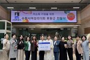 oto방송 김민석 기자 | 수원시여성리더회가 16일 수원시청 본관 1층에서 저소득가정을 위한 후원금 300만 원을 수원시에 전달했다. 후원금은 형편이 어려운 가정에 지원할 예정이다. 전달식에는 김은주 수원시 여성가족국장, 김수민 수원시여성리더회 총회장 등이 참석했다. 김수민 총회장은 “우리 여성리더회 임원진과 회원들의 따뜻한 마음을 모았다”며 “형편이 어려운 가정에 그 마음이 잘 전달되길 바란다”고 말했다. 수원시여성리더회는 수원시 양성평등기금 사업으로 운영되는 ‘수원시 여성지도자대학’ 수료생들로 구성된 단체다. 여성의 권익 증진과 복지 향상, 지역사회 발전을 목표로 2004년 12월 출범했다. 수료생 1240명이 활동 중이며, 매년 저소득가정 후원금과 물품 기부, 한부모가정 지원, 지역 복지시설 봉사활동 등 다양한 사회공헌 활동을 하고 있다.