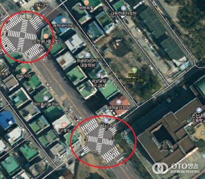oto방송 김민석 기자 | 논산시가 안전한 보행 환경 조성을 위해 관내 최초로 ‘대각선 횡단보도’설치를 추진한다.