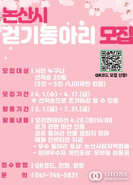 oto방송 김민석 기자 | 논산시는 오는 17일까지‘비대면 걷기동아리’참여자를 모집한다.