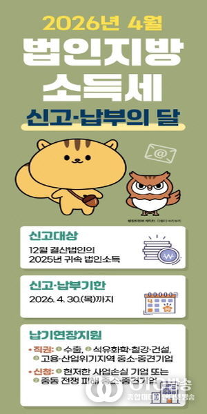 oto방송 김민석 기자 | 안성시는 12월 결산법인의 2025년 귀속 법인소득에 대한 ‘법인지방소득세 집중신고기간’을 4월 1일(수)부터 4월 30일(목)까지 운영한다고 밝혔다.