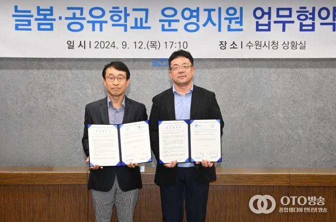 oto방송 김민석 기자 | 경기도수원교육지원청은 9월 12일 수원형 늘봄학교와 공유학교 운영 지원을 위해 수원특례시청과 업무협약을 체결했다고 밝혔다.
