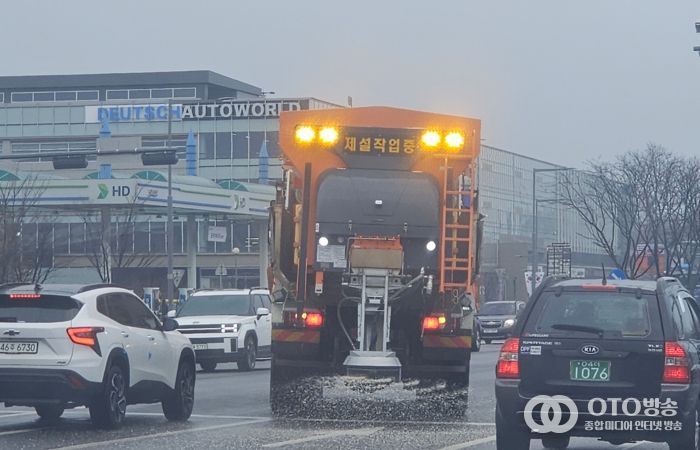 oto방송 김민석 기자 | 수원시가 10일 선제적으로 제설제를 살포해 블랙아이스(도로결빙)에 대비했다.