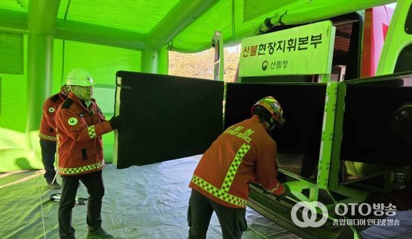 이번 훈련은 대형 산불 발생 시 일사불란한 지휘 체계를 확립하기 위한 것으로, 지휘차량 내 시스템 가동 상태를 확인하고 진화 전략 수립 과정을 함께 점검했다.