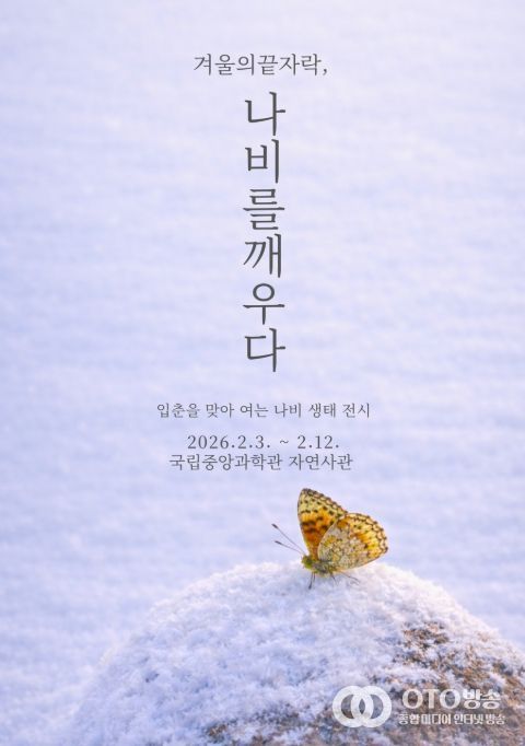 oto방송 김민석 기자 | 미래의 꿈을 만드는 과학기술 문화 이음터(플랫폼) 과학기술정보통신부 국립중앙과학관은 입춘을 맞아 겨울과 봄의 경계에서 자연의 변화를 살펴보는 나비 생태 전시 코너 '겨울의 끝자락, 나비를 깨우다'를 2026년 2월 3일부터 2월 12일까지 10일 동안 운영한다고 밝혔다.