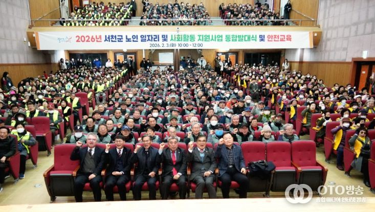oto방송 김민석 기자 | 서천군은 지난 3일, 서천군 노인일자리 수행기관과 노인일자리 참여 어르신 630명이 참석한 가운데 ‘2026년 노인일자리 및 사회활동 지원사업 통합발대식 및 안전교육’을 개최했다.