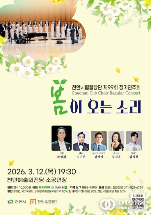 oto방송 김민석 기자 | 천안시립합창단이 오는 3월 12일 천안예술의전당 소공연장에서 제99회 정기연주회 ‘봄이 오는 소리’를 개최한다.