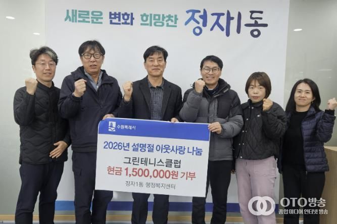 oto방송 김민석 기자 | 수원시 장안구 정자1동은 지난 3일, 그린테니스클럽이 설 명절을 맞아 관내 취약계층을 돕기 위한 기부금 150만원을 전달했다고 밝혔다.