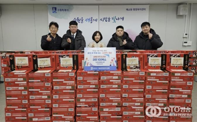 oto방송 김민석 기자 | 지난 3일 수원성결교회는 설 명절을 맞아 수원시 팔달구 매교동에 관내 복지 사각지대에 있는 어려운 이웃들이 따뜻한 명절을 보낼 수 있도록 라면(20개입) 100박스를 후원했다.