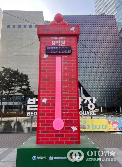 oto방송 김민석 기자 | 안양시는 범계역 광장에 설치된 ‘사랑의 온도탑’이 올해도 100도를 넘겼다고 4일 밝혔다. 지난해 12월 1일부터 올해 1월 31일까지 진행된 모금 결과, 시민과 기업의 참여로 온도는 최종 101도를 기록했다.