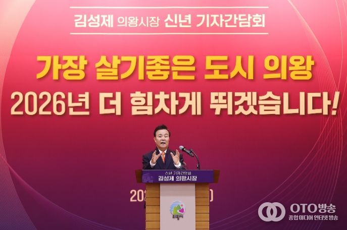 oto방송 김민석 기자 | 김성제 의왕시장이 5일 시청 대회의실에서 2026년 신년 기자간담회를 열고 민선8기 의왕시 주요성과와 2026년 시정 운영방향에 대해 설명하는 시간을 가졌다.