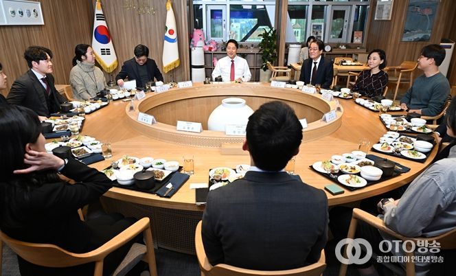 oto방송 김민석 기자 | 오세훈 서울시장은 6일 오후 12시 서울시청 집무실에서 서울장학재단 장학생들과 간담회를 갖고 학업장려금 지원사업을 통해 각자 꿈을 이루고 사회에 뿌리내리고 있는 청년들의 밝은 내일을 응원했다.
