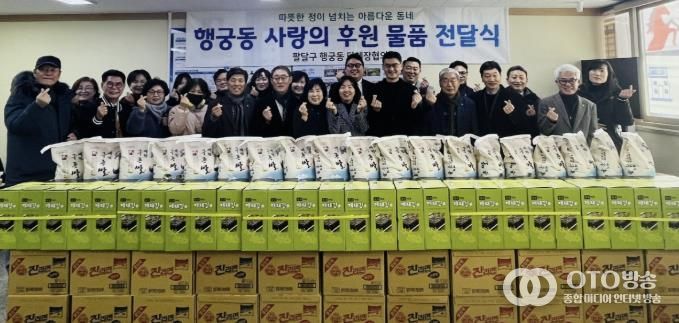 oto방송 김민석 기자 | 수원시 팔달구 행궁동은 지난 6일 설 명절을 맞아 ‘행궁동 사랑의 후원 물품 전달식’을 개최했다. 이번 전달식에는 설 명절을 앞두고 행궁동 취약계층을 위해 후원 물품을 기부한 행궁동 주민자치회를 비롯한 단체장들과 후원자들이 참석해 이웃 나눔의 의미를 함께 했다.