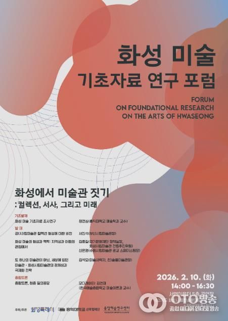 oto방송 김민석 기자 | 화성특례시가 오는 2월 10일 서연이음터에서, 시립미술관 건립을 위한 ‘화성 미술 기초연구 성과’를 공유하고 미술관의 정체성과 운영 방향을 모색하기 위한 연구포럼을 개최한다.