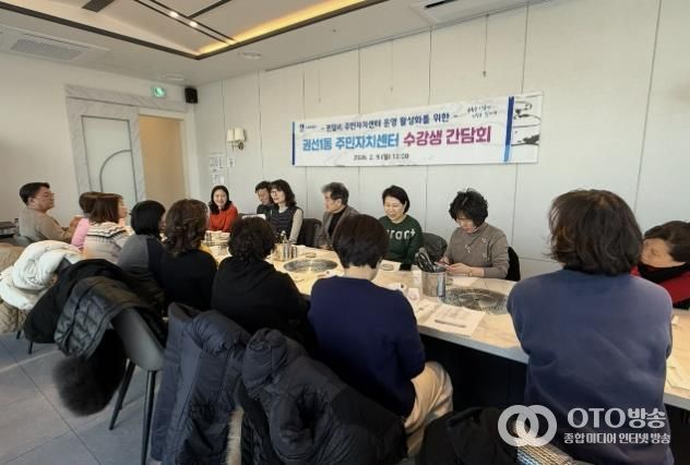 oto방송 김민석 기자 | 지난 6일 및 9일, 권선1동 주민자치회는 주민자치센터 프로그램 운영 활성화를 도모하고자 2026년 권선1동 주민자치센터 강사 간담회 및 수강생 간담회를 각각 개최했다.