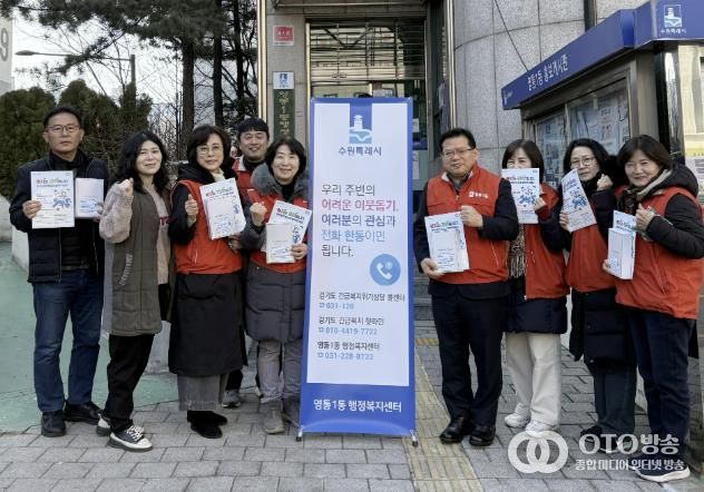oto방송 김민석 기자 | 영통구 영통1동은 지난 9일 영통1동 지역사회보장협의체가 청명역 일대에서 동절기 복지사각지대 발굴을 위한 홍보 캠페인을 진행했다고 밝혔다.