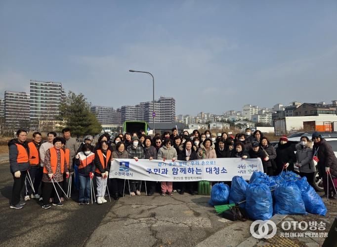 oto방송 김민석 기자 | 수원시 권선구 권선2동 행정복지센터는 지난 11일 설 명절을 맞아 통장협의회, 주민자치회, 바르게살기위원회 등 단체원 및 지역주민 70여 명과 함께 설맞이 대청소를 추진했다고 밝혔다.