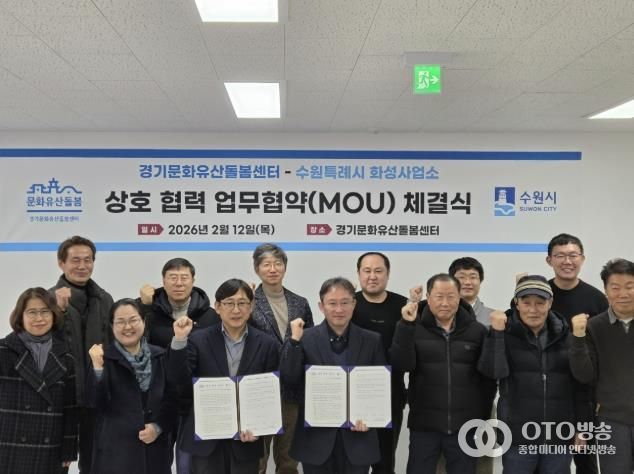 oto방송 김민석 기자 | 수원시 화성사업소와 경기문화유산돌봄센터가 12일 경기문화유산돌봄센터에서 ‘수원화성 마을장인’ 육성과 수원화성 보수 네트워크 구축을 위한 업무협약을 연장 체결했다.